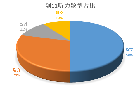 剑11的阅读整体上看比较简单。 四套题目160道题中,填空题所占比重最大37%,题目个数60道。