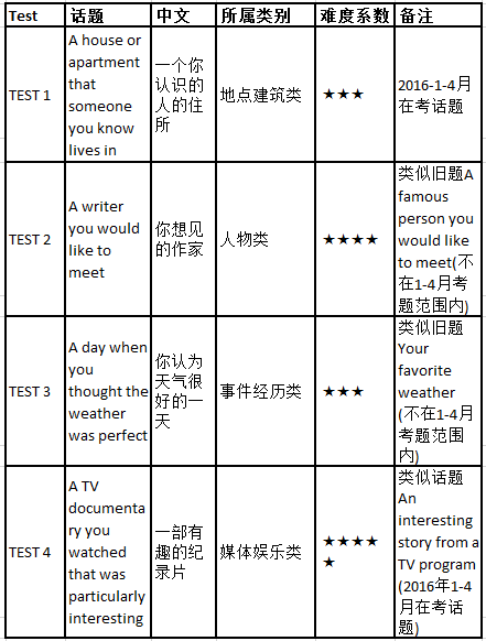 4.A TV documentary you watched that was particularly interesting,此话题对考生来讲有一定的难度,难点在于有部分学生不认识documentary这个单词。另外,如果平时没有关注此类节目,完全无法展开。这类话题必须要提前准备。